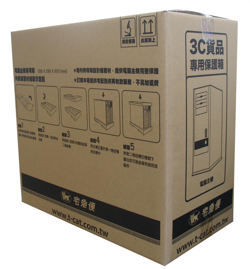 紙箱(英文 carton或hard paper case):是應用最廣泛的包裝制品,按用料不同,有瓦楞紙箱、單層紙板箱等,有各種規格和型號。紙箱常用的有三層、五層,七層使用較少,各層分為里紙、瓦楞紙、芯紙、面紙,里、面紙有茶板紙、牛皮紙,芯紙用瓦楞紙,各種紙的顏色和手感都不一樣。